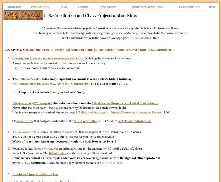 Over 100 choices of project-based learning activities are provided to enhance teaching U.S. Constitution and civics topics in the classroom.