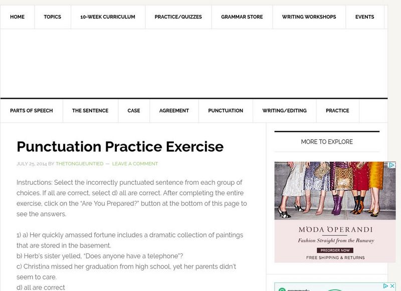 This site features a punctuation practice exercise. Students have an opportunity to test their punctuation knowledge when they visit this interactive resource.