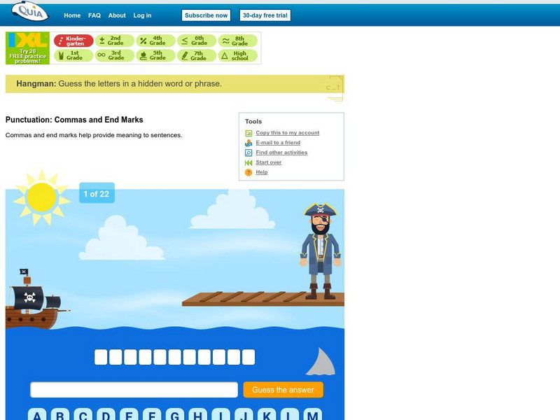 Play Hangman as you recall the basic types of sentences and punctuation marks. Great fun!