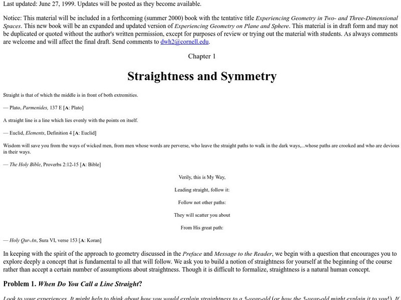 This site, part of a planned Geometry textbook, involves real-world applications with symmetry and reflection using pictures and graphs.