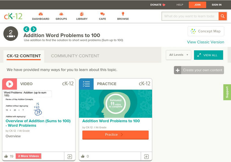 Ck 12: Elem Math: Overview of Addition Sums to 100 Word Problems
