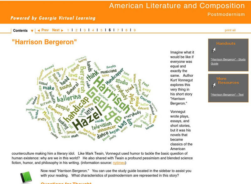 Ga Virtual Learning: American Literature: Postmodernism: "Harrison Bergeron"