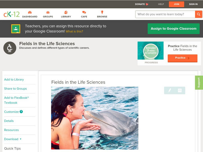 Ck 12: Life Science: Fields in the Life Sciences