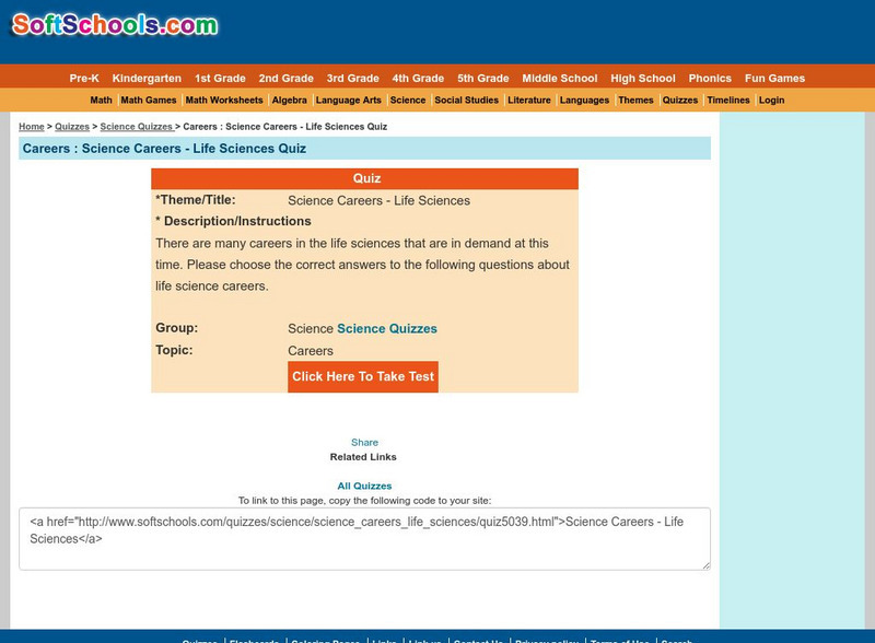 Take an interactive, multiple choice quiz over life science careers. After completing the quiz, check your score, and then revisit any incorrect question for further review.