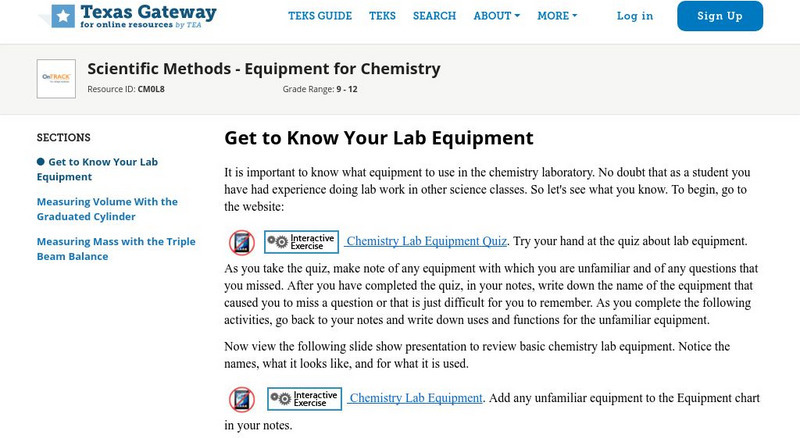 Texas Gateway: Scientific Methods Equipment for Chemistry