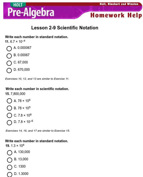 Holt, Rinehart and Winston: Homework Help Independent Practice: Scientific Notation