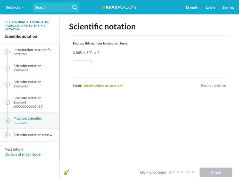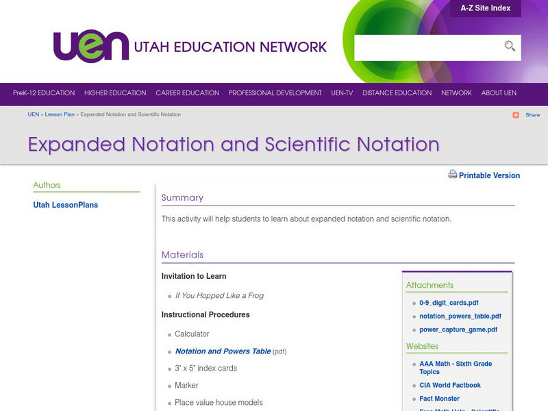 [Free Registration/Login may be required to access all resource tools.] Online tutorial explains how to express and manipulate numbers using scientific notation and other types of notation.