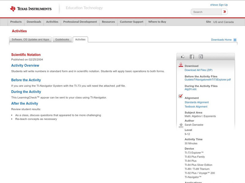 [Free Registration/Login may be required to access all resource tools.] Students learn to compare and order numbers in scientific notation. Students examine guided notes, review guided practice, watch instructional videos and attempt...