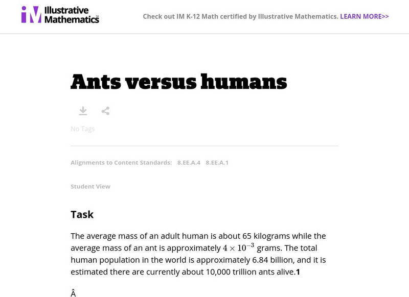 Illustrative Mathematics: 8.ee Ants Versus Humans
