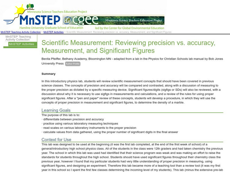 Serc: Mn Step: Scientific Measurement: Reviewing Precision vs. Accuracy
