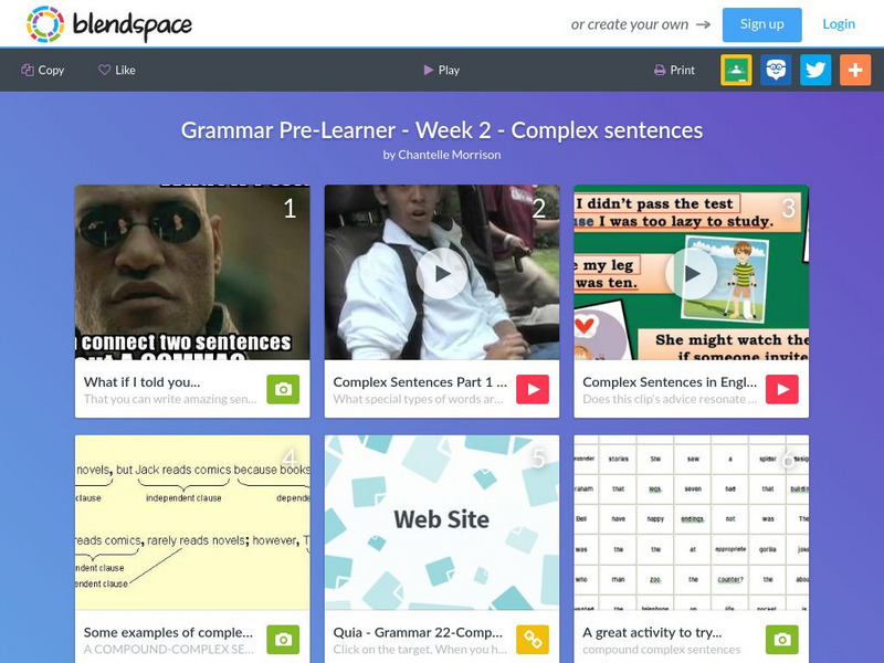 Blendspace: Grammar Pre Learner Week 2 Complex Sentences