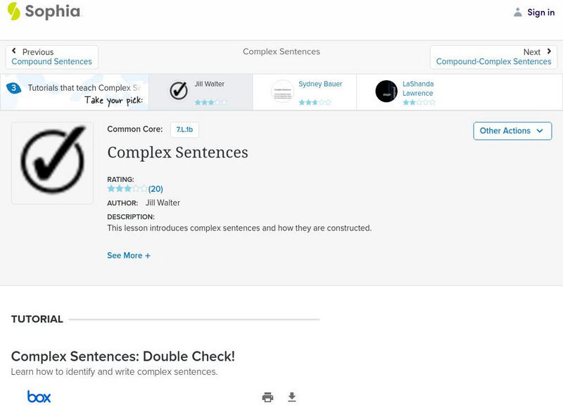 A learning module that includes links to videos, images, charts, and activities on complex sentences.