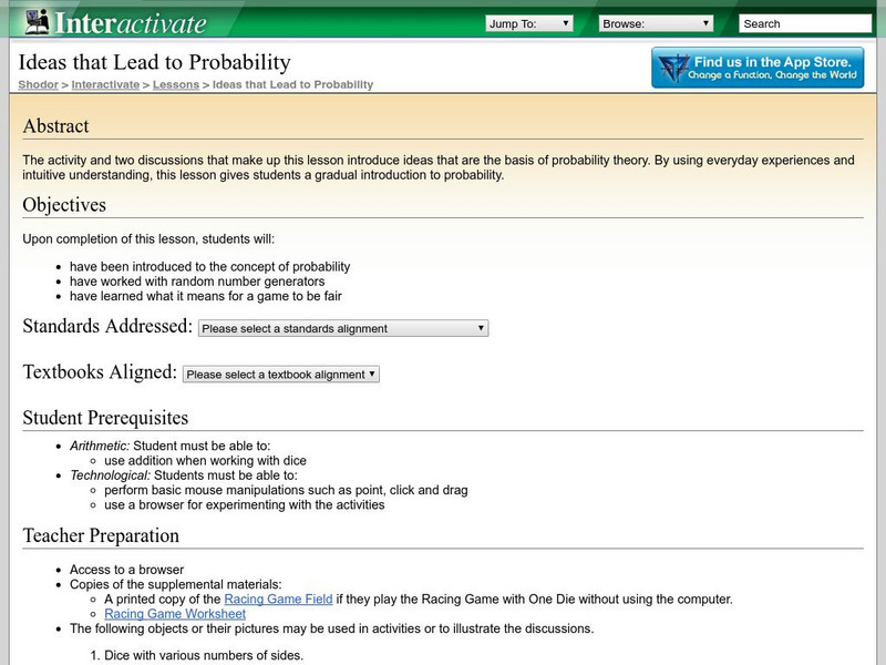 Shodor Interactivate: Lesson: Ideas That Lead to Probability