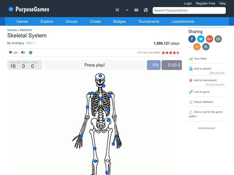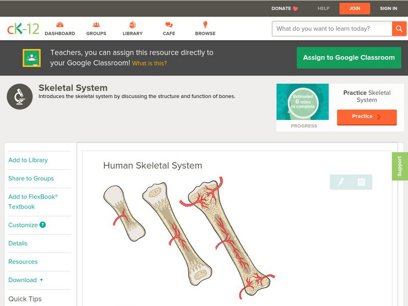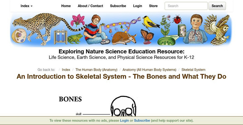 Students can learn about the human skeletal system through this easy-to-access tutorial. Sections include an introduction, organization of the skeleton, appendicular skeleton, and the axial skeleton. Interactive quizzes for each section...