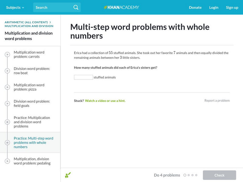 Khan Academy: Multi Step Word Problems With Whole Numbers