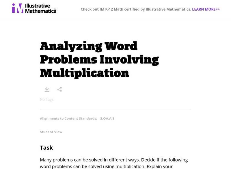 Illustrative Mathematics: Analyzing Word Problems Involving Multiplication