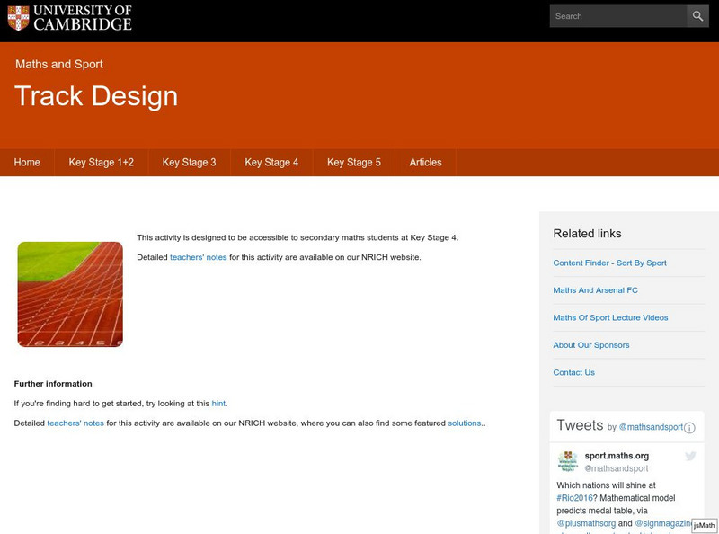 You are designing and marking out the running track for a new Olympic stadium. Where should the staggered starting positions be marked for the 200m and 400m events? This activity is aimed at Key Stage 4 students (age 14-16).