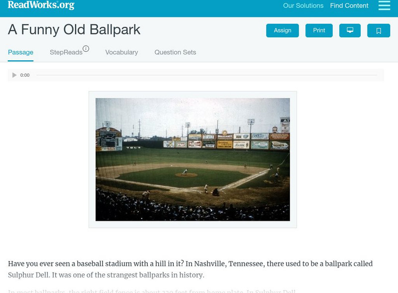 [Free Registration/Login Required] An informational text about a unique baseball stadium in Nashville, Tennessee. A question sheet is available to help students build skills in reading comprehension.