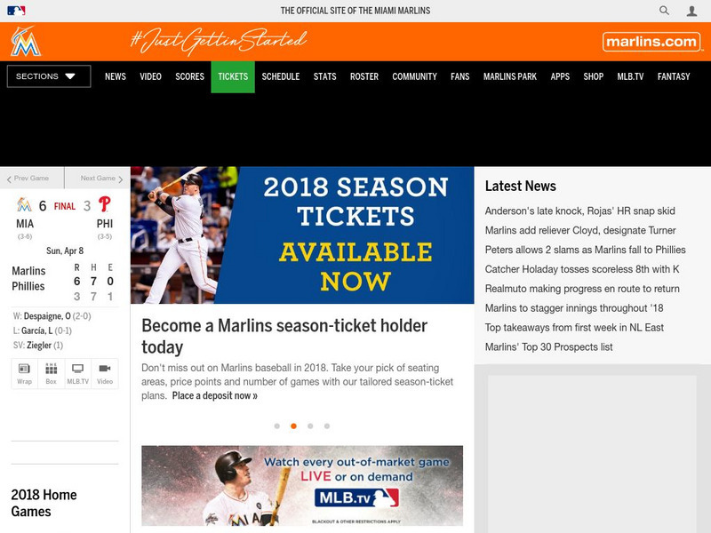 The official site of the Miami Marlins contains up-to-date news, player profiles, scores, statistics, a history of the team, a profile of Pro Player Stadium, audio/video clips, and much more.