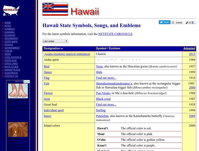 Learn all about Hawaii's state symbols including the state bird, flower, fish, dance, flag, and more. Click on the symbol name to see a picture and learn more information.