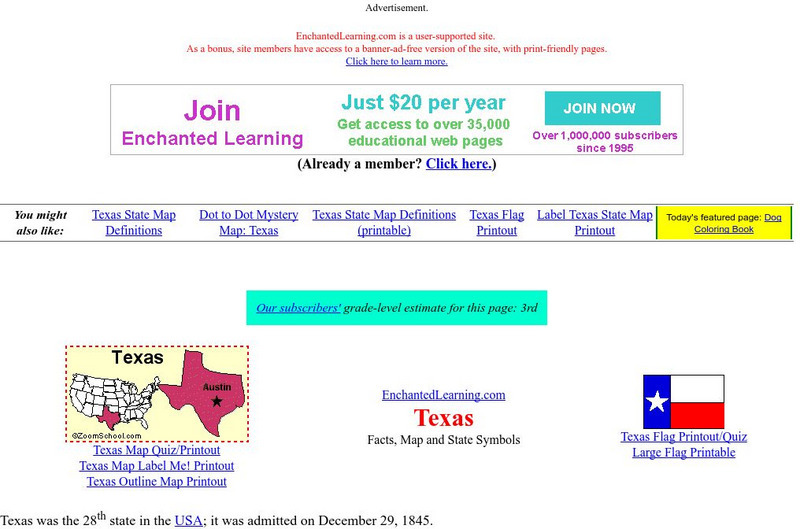 Enchanted Learning: Texas Facts, Maps, and State Symbols