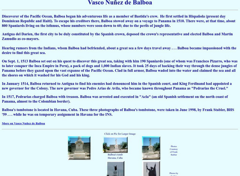 This page tells of the early history of Panama. "Vasco Nunez de Balboa first settled in Hispanola (present day Dominican Republic and Haiti). To escape his creditors there, Balboa stowed away on a voyage to Panama in 1510. There were, at...