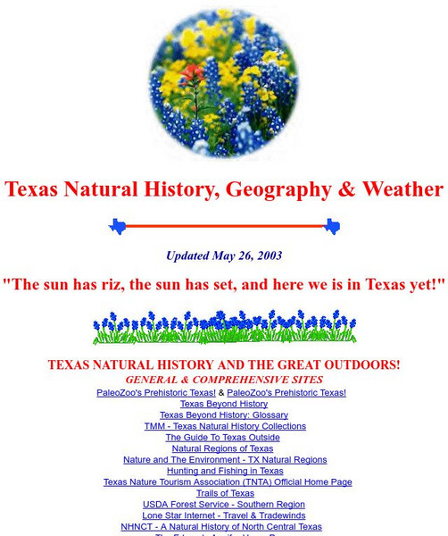 Teacher has organized many sites under these headings: Texas Natural History, Regions of Texas, Texas Animals, Texas Plants, Texas weather, Texas natural disasters, Galveston, Texas State parks, national historical landmarks, Texas...