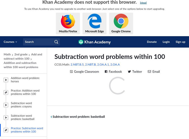 Khan Academy: Challenging Add and Subtract Word Problems (Within 100)