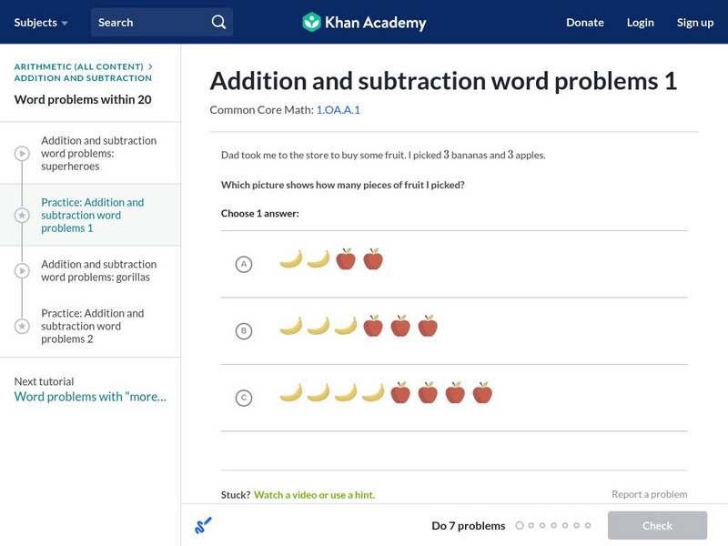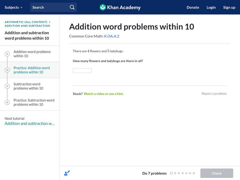 Khan Academy: Addition Word Problems Within 10