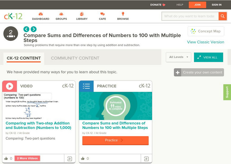 [Free Registration/Login may be required to access all resource tools.] The video shows how to break down a word problem into two steps to solve an addition problem with numbers up to 100. The video is followed by a series of practice...