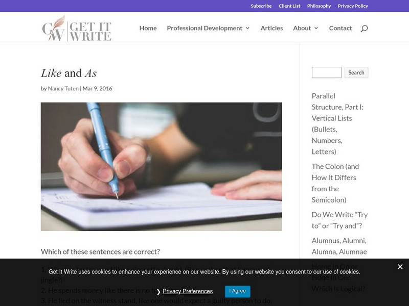 Do you have trouble knowing when to use "like" and when to use "as?" This is a common mistake, so understanding the difference will help you in writing correctly. This site will give you the usage rules as well as a self-test.