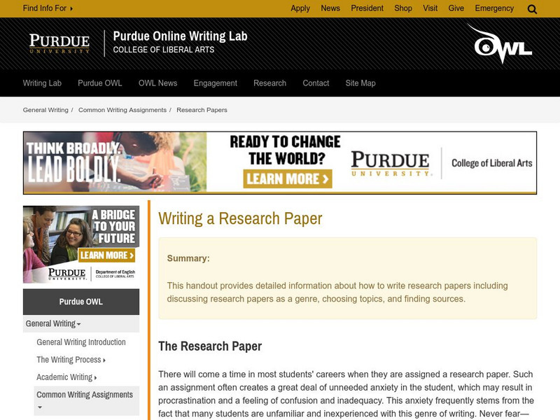 The section on Common Types of Writing Assignments is a particularly helpful piece of this site. Learn how to approach a wide variety of writing tasks from lab reports to literary reviews. Then use the rest of the site to learn how to...