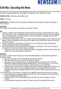 Young journalists learn to appreciate the advantages of how modern media technology enables rapid news delivery as they compare today's media revolution to how the telegraph and Morse Code revolutionized news coverage during the Civil...