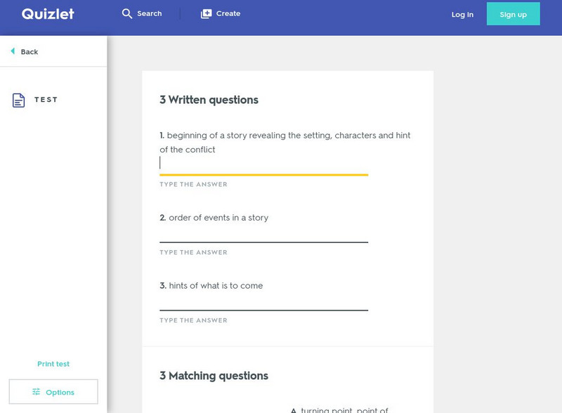 Quizlet: 3rd Grade Story Elements and Plot Vocabulary: Match