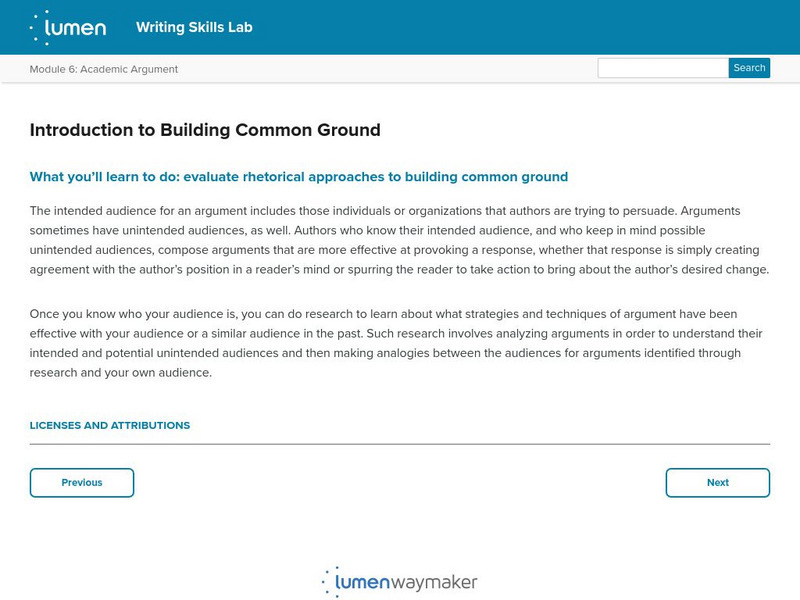 Lumen: Writing Skills: Introduction to Building Common Ground