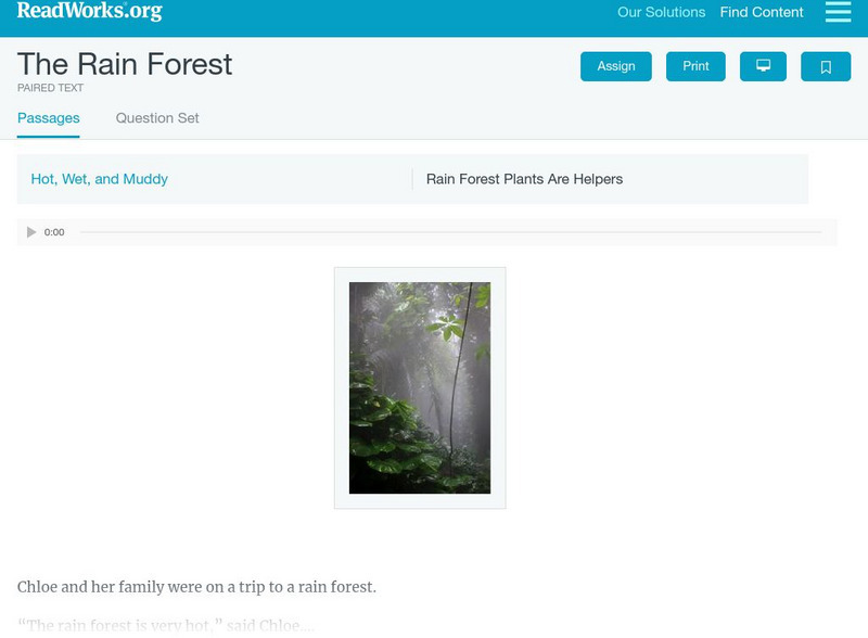 [Free Registration/Login Required] Read and/or listen to the following paired texts on the subject of the Rain Forest. Use the guided question set to assess students understanding of the topic. Students can write their answers, respond...