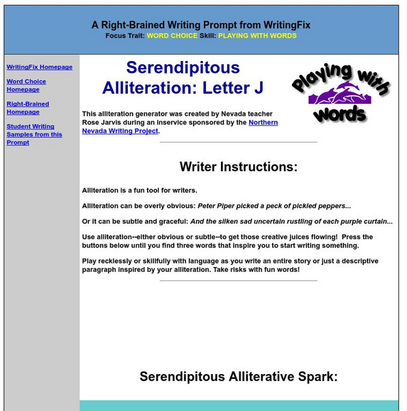 In this lesson, students will play with words as they use alliteration. Students will press buttons to generate adjectives, verbs, names, and nouns that begin with the letter "J" in them. Students will continue to generate letter "J"...
