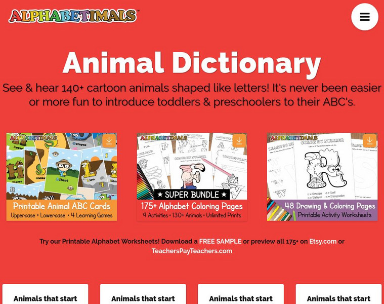This site includes animated animals that represent each letter of the alphabet. Sound buttons are included to accompany the animal represented by the corresponding letter.
