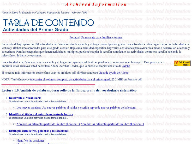 U.s. Dept. Of Education: Compact for Reading: First Grade Activities (Spanish)