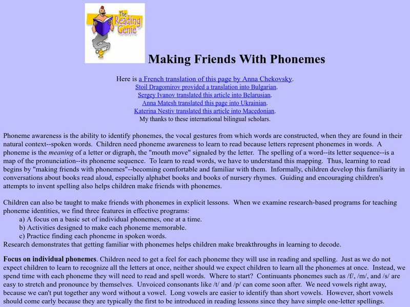 This article provides suggestions for teaching children to understand and begin to manipulate phonemes.