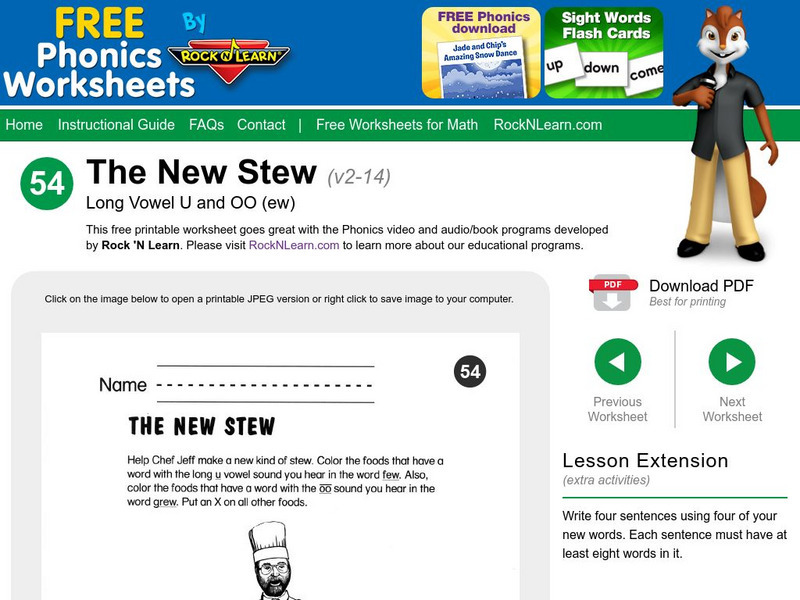 This printable phonics worksheet from Rock 'N Learn can be used as a reinforcement activity or as an assessment. Students will look at a series of pictures labeled with words. Students will color words that have the long /u/ and include...
