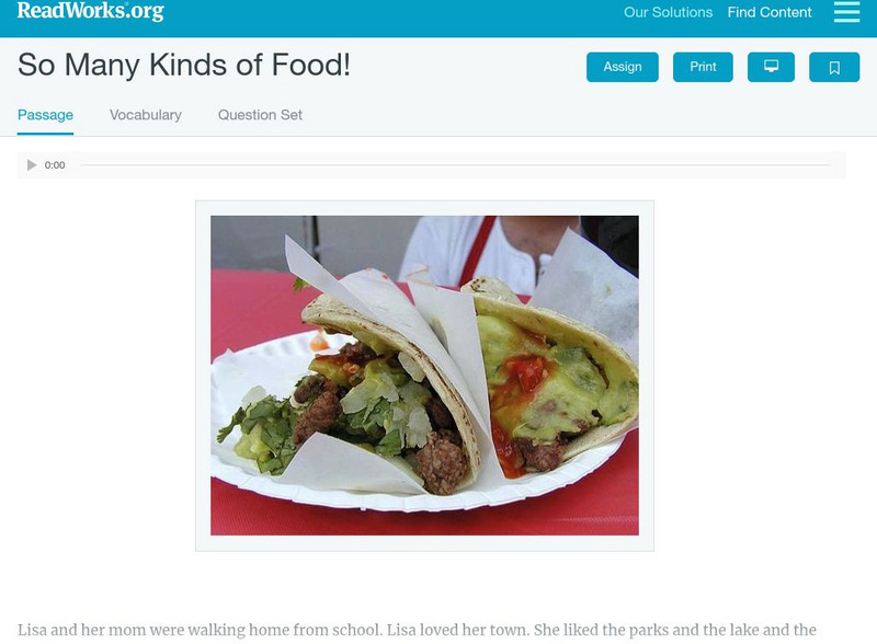 [Free Registration/Login Required] A literary text about a little girl named Lisa who likes to eat many different kinds of foods. A question sheet is available to help students build skills in reading comprehension.