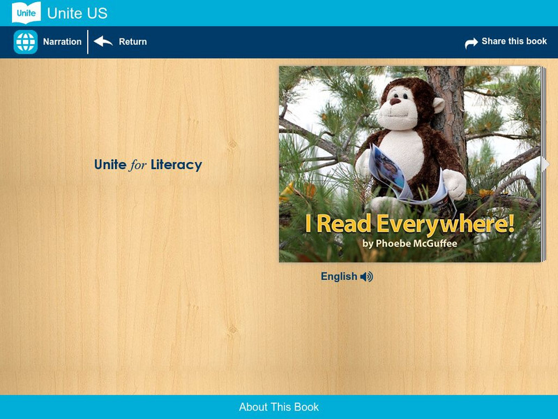 Follow a stuffed toy as it 'reads' books in lots of unusual places. Includes audio narration in 26 additional languages with text in English.