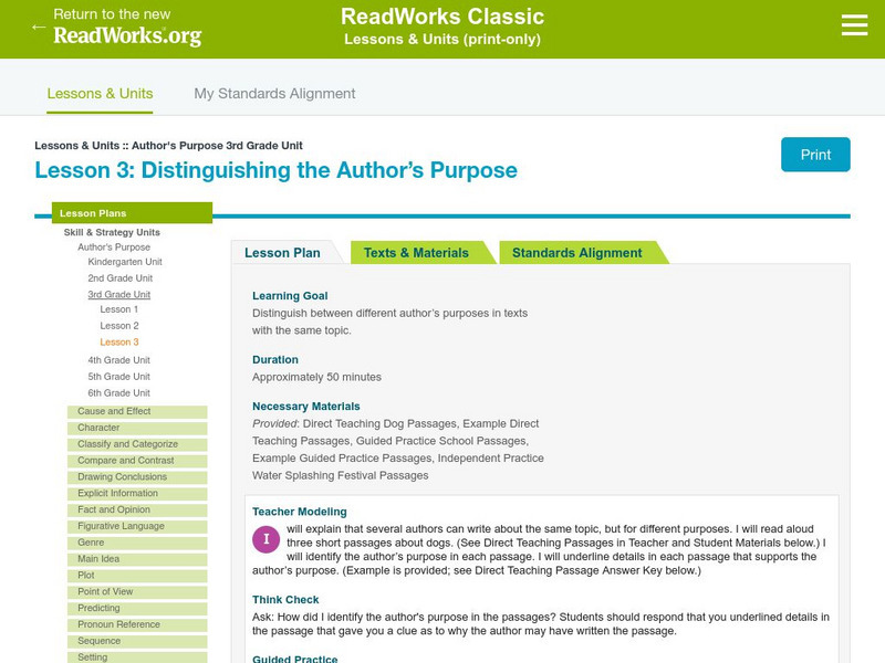 Read Works: Lesson: Author's Purpose: Cause and Effect Signal Words