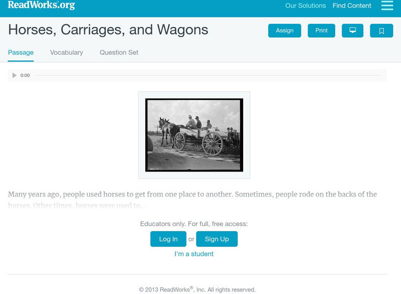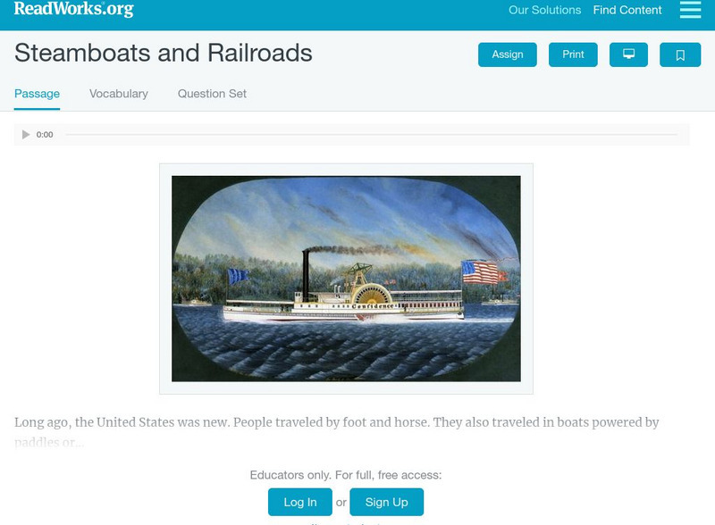 [Free Registration/Login Required] An informational text about transportation in the past. A question sheet is available to help students build skills in reading comprehension.