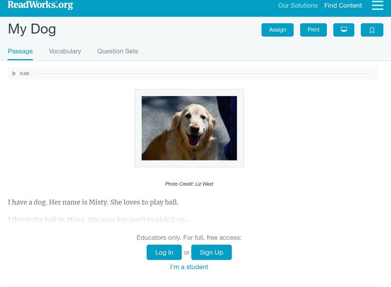 [Free Registration/Login Required] A literary text about having a pet dog. A question sheet is available to help students build skills in reading comprehension.