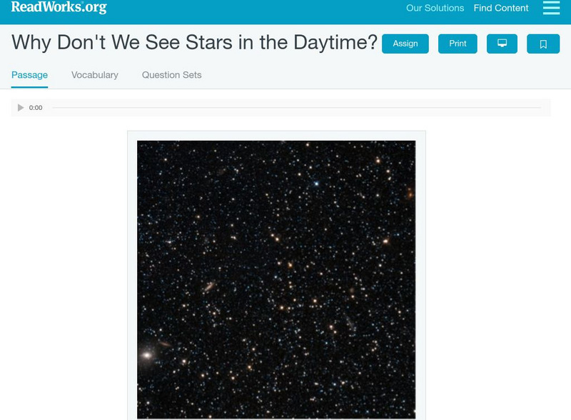 [Free Registration/Login Required] An informational text explaining why start cannot be seen during the day. A question sheet is available to help students build skills in reading comprehension.