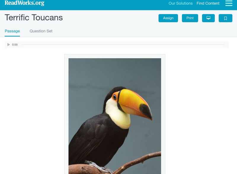 [Free Registration/Login Required] This informational passage is about toucans and is followed by a comprehension question set.