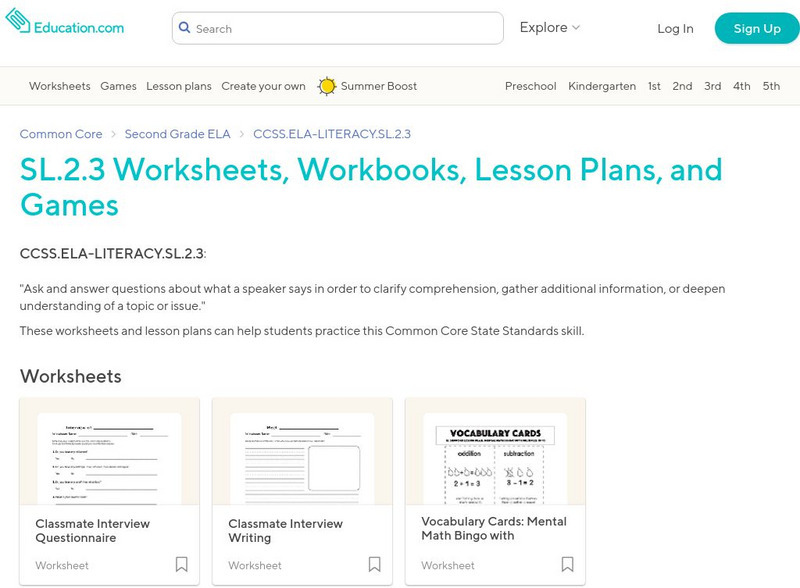 Education.com: Sl.2.3 Worksheets, Workbooks, Lesson Plans, and Games
