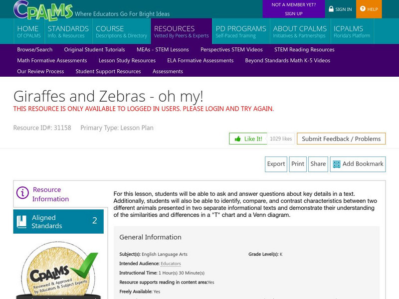 [Free Registration/Login Required] For this lesson, learners will be able to ask and answer questions about key details in a text. Additionally, students will also be able to identify, compare, and contrast characteristics between two...